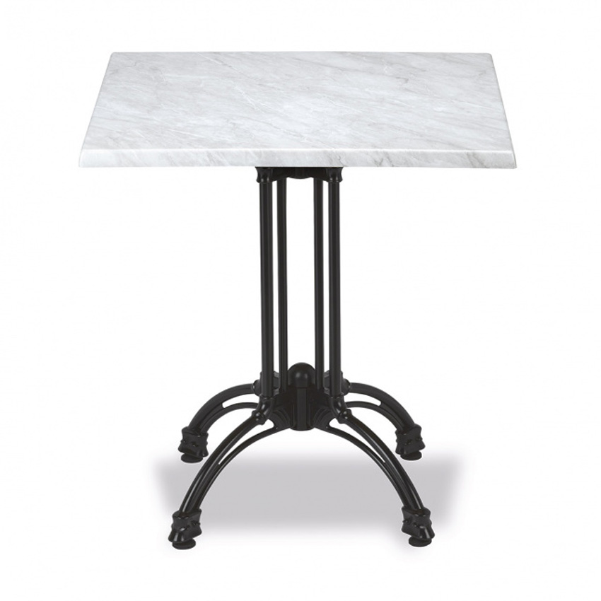 Mesa de estilo clásico con base de aluminio fundido pintado y columna decorativa. Diseñada para comedores de hostelería, permite múltiples formatos de tablero manteniendo estabilidad y una imagen tradicional.