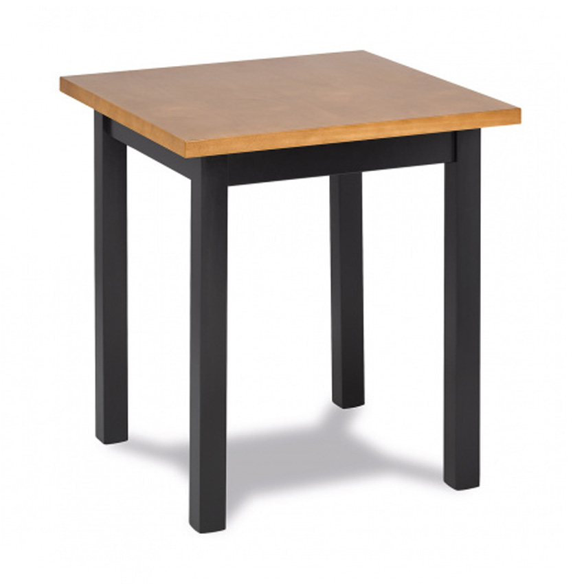 Mesa fabricada en madera de pino barnizada con tablero chapado y cantos macizos en pino. Disponible en varios colores (nogal, miel, antracita, blanco y combinaciones) y medidas, desde 70x70 cm hasta ø120 cm. Resistente y elegante, ideal para equipar comedores de restaurantes y bares que buscan calidez, durabilidad y opciones personalizadas para su sala.