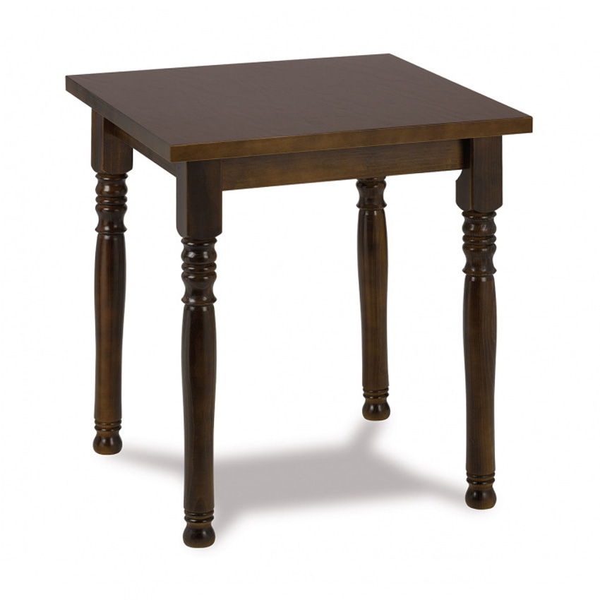 Mesa con armazón en madera de pino barnizada y tablero en pino barnizado o DM chapado en pino. Ofrece medidas versátiles, incluido ø120 cm, y variedad de acabados (nogal, miel, antracita, blanco y combinaciones). Perfecta para locales de restauración que buscan un diseño cálido, funcional y personalizable para salas, comedores y terrazas cubiertas.