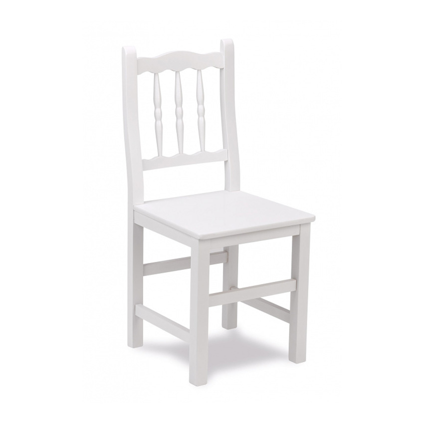 Silla de madera de pino barnizada, disponible en antracita, blanco, nogal y miel. Su diseño funcional y actual se adapta a múltiples estilos decorativos, desde rústico a moderno. Ofrece varias combinaciones de color para personalizar cualquier espacio de comedor o cocina. Fabricada con atención al detalle para garantizar resistencia y larga vida útil.